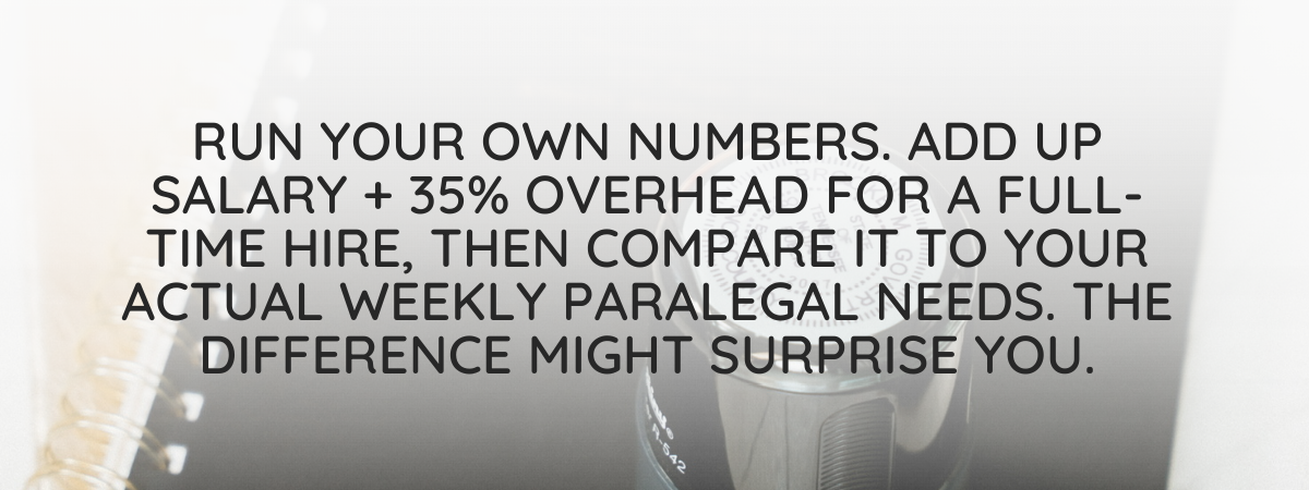 Now compare that to a freelance paralegal. A solo attorney or small firm needing just 10 hours of support per week, at a flat rate of $55.00/hour, would spend roughly $28,600 per year — with ZERO overhead, NO benefits, and NO payroll taxes.