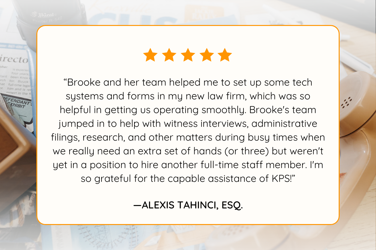 Subscribe to our monthly newsletter, KNOXVILLE PARALEGAL PRESS: we’ll into your inbox the first Monday of each month for guidance on best practices, legal resources, industry updates, and monthly favorites from our founder Brooke ⚖️